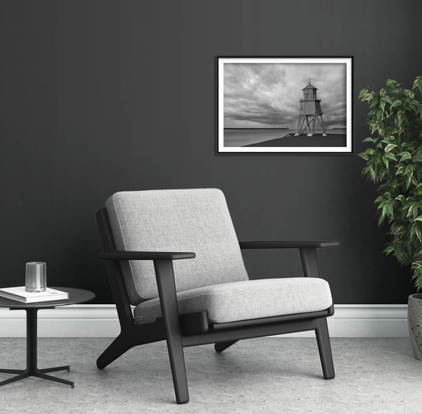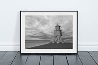 Herd Groyne Lighthouse Grey Skies - Black and White - South Shields